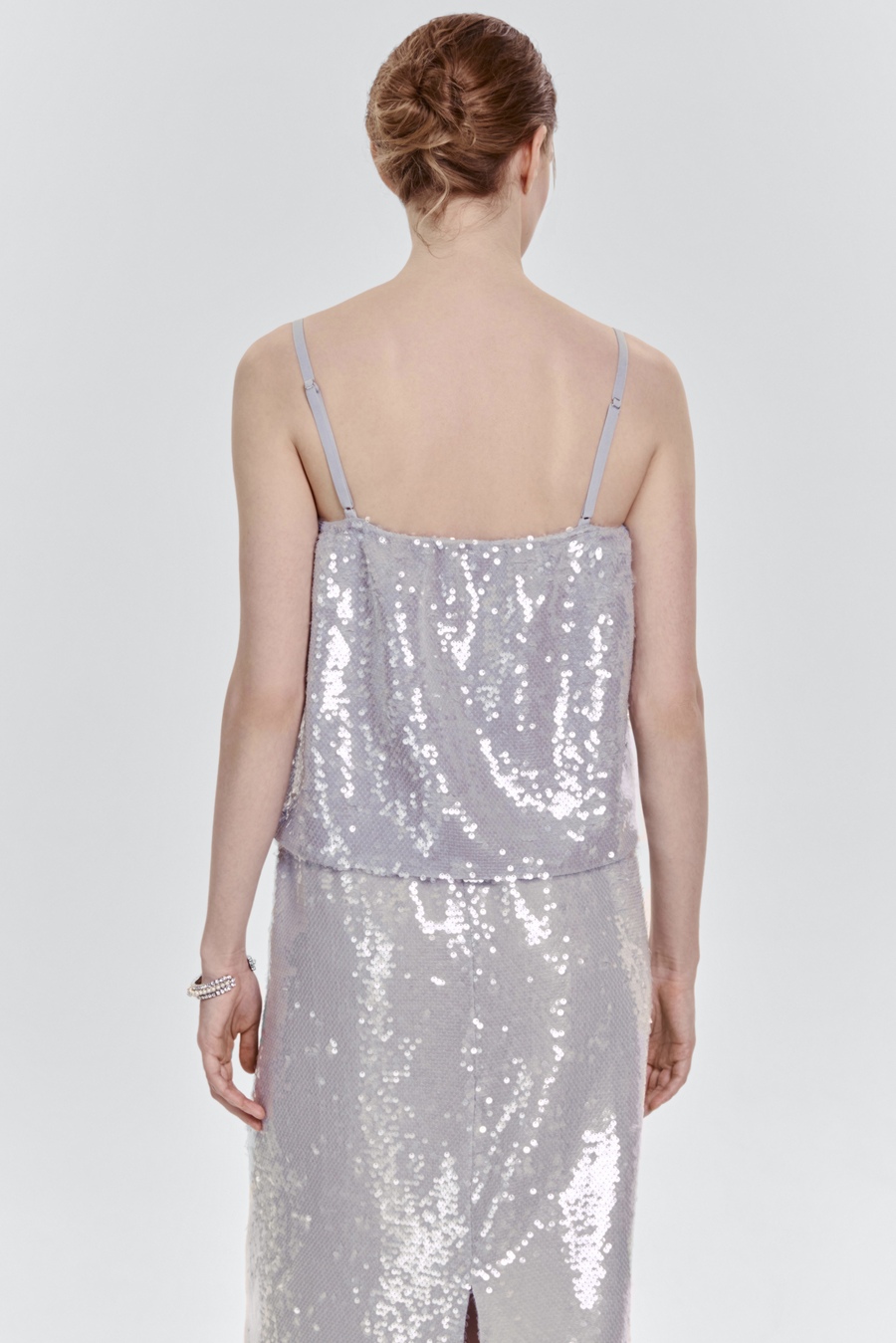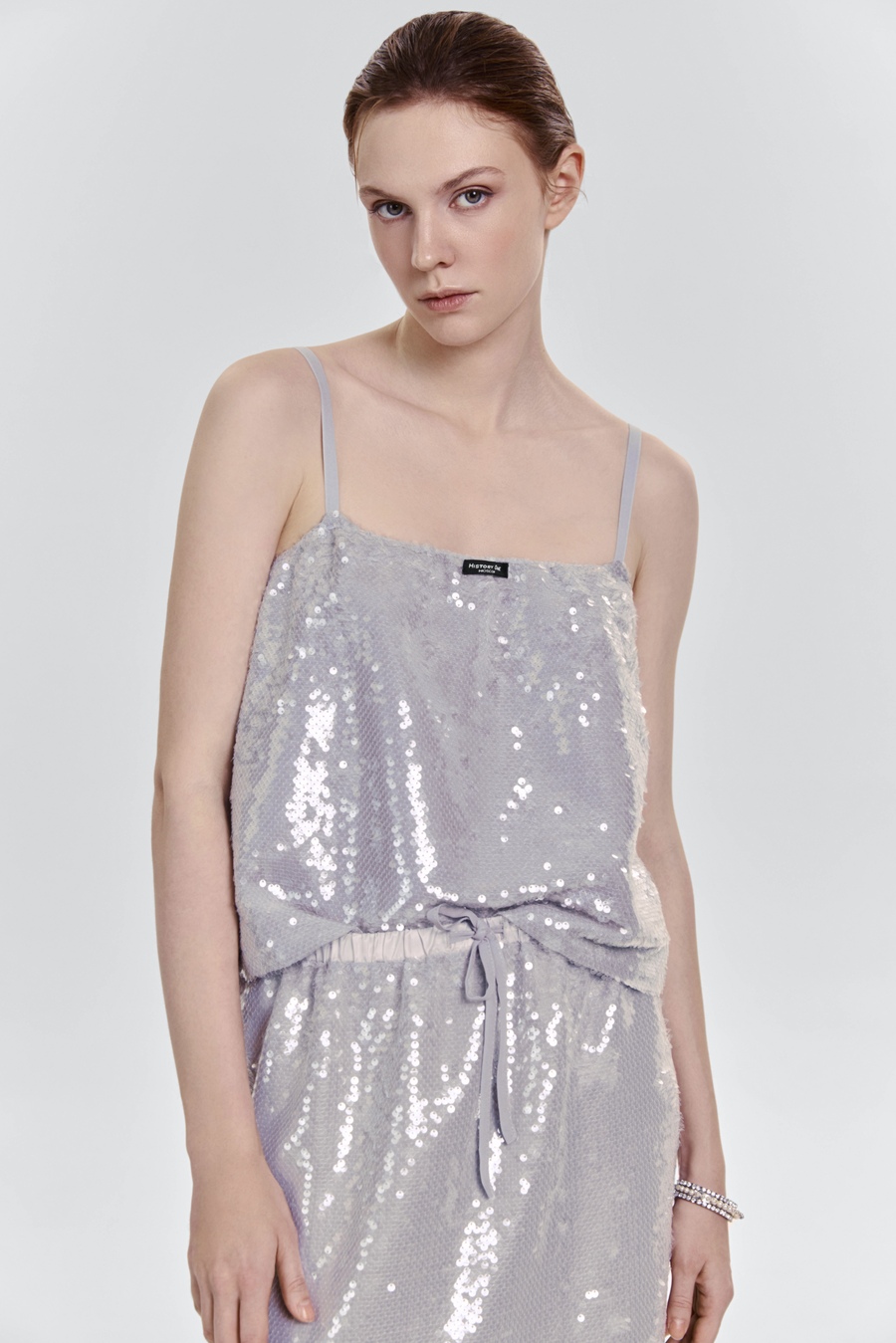 Топ с пайетками из праздничной коллекции — это ваш личный свет в сезоне вечеринок. Он создан, чтобы ловить каждый луч, но не перебивать ваш образ, а подчёркивать его — тонко, эффектно, уверенно.