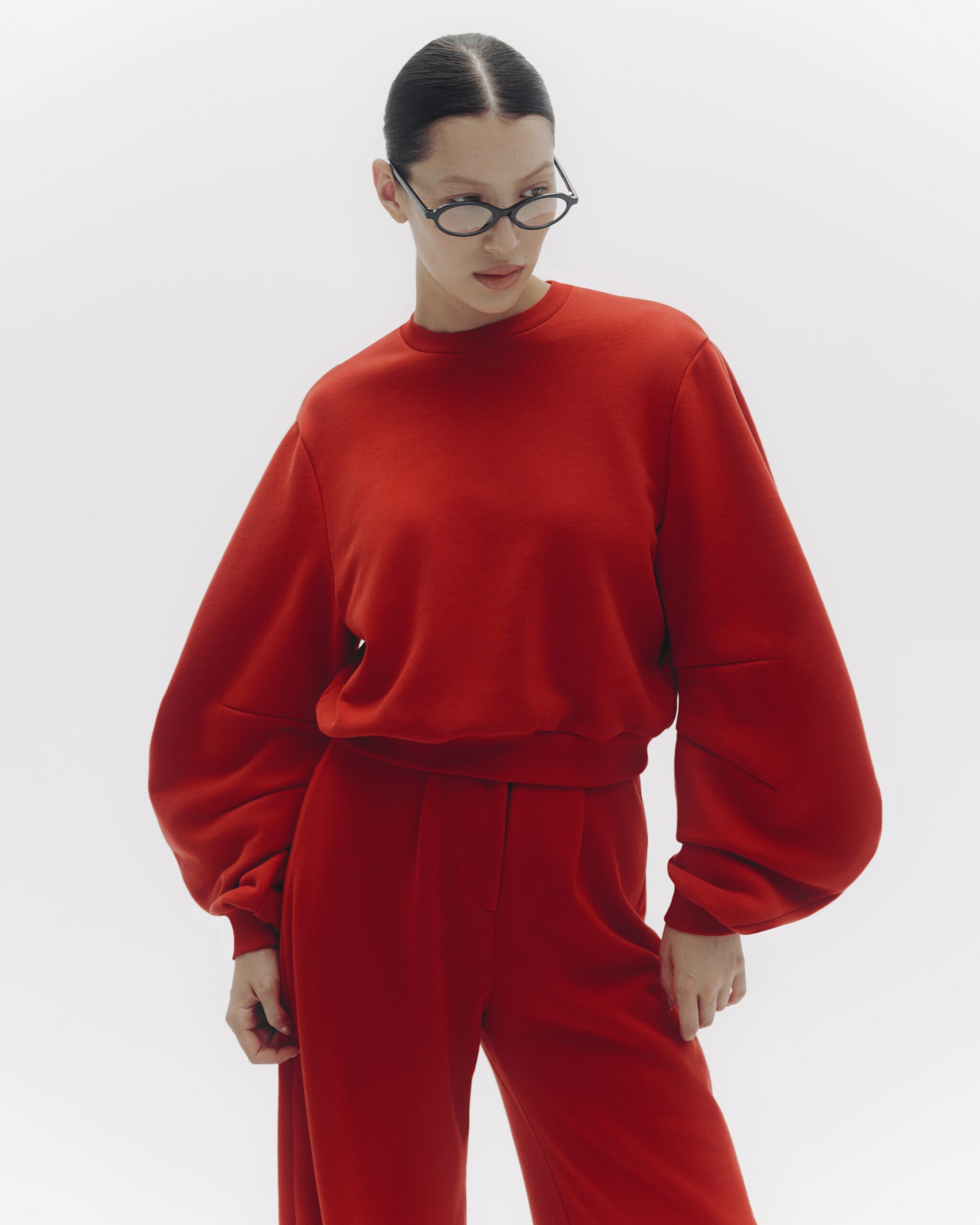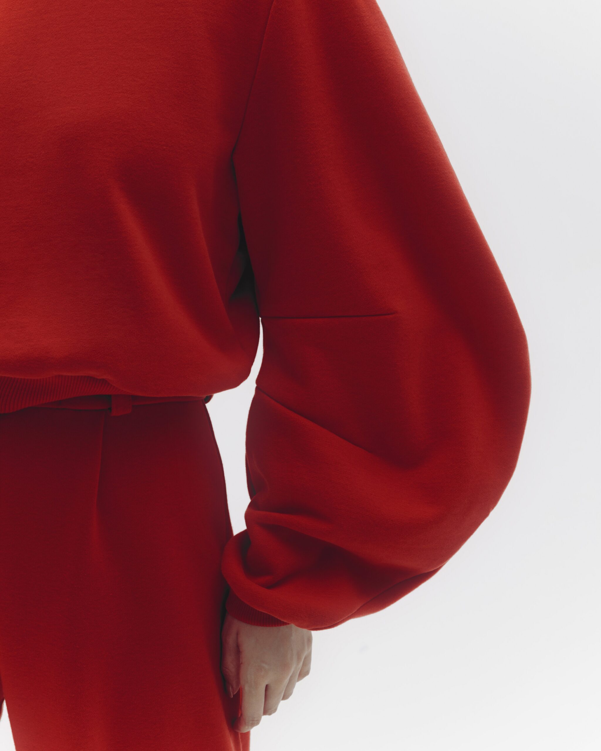 Элегантное слияние уюта и стиля, выполненное из мягкого футера с бархатным финишем. Объемные рукава добавляют выразительности и современности, создавая динамичный силуэт. Этот свитшот идеально подходит как для расслабленного уличного стиля, так и для более изысканных образов.