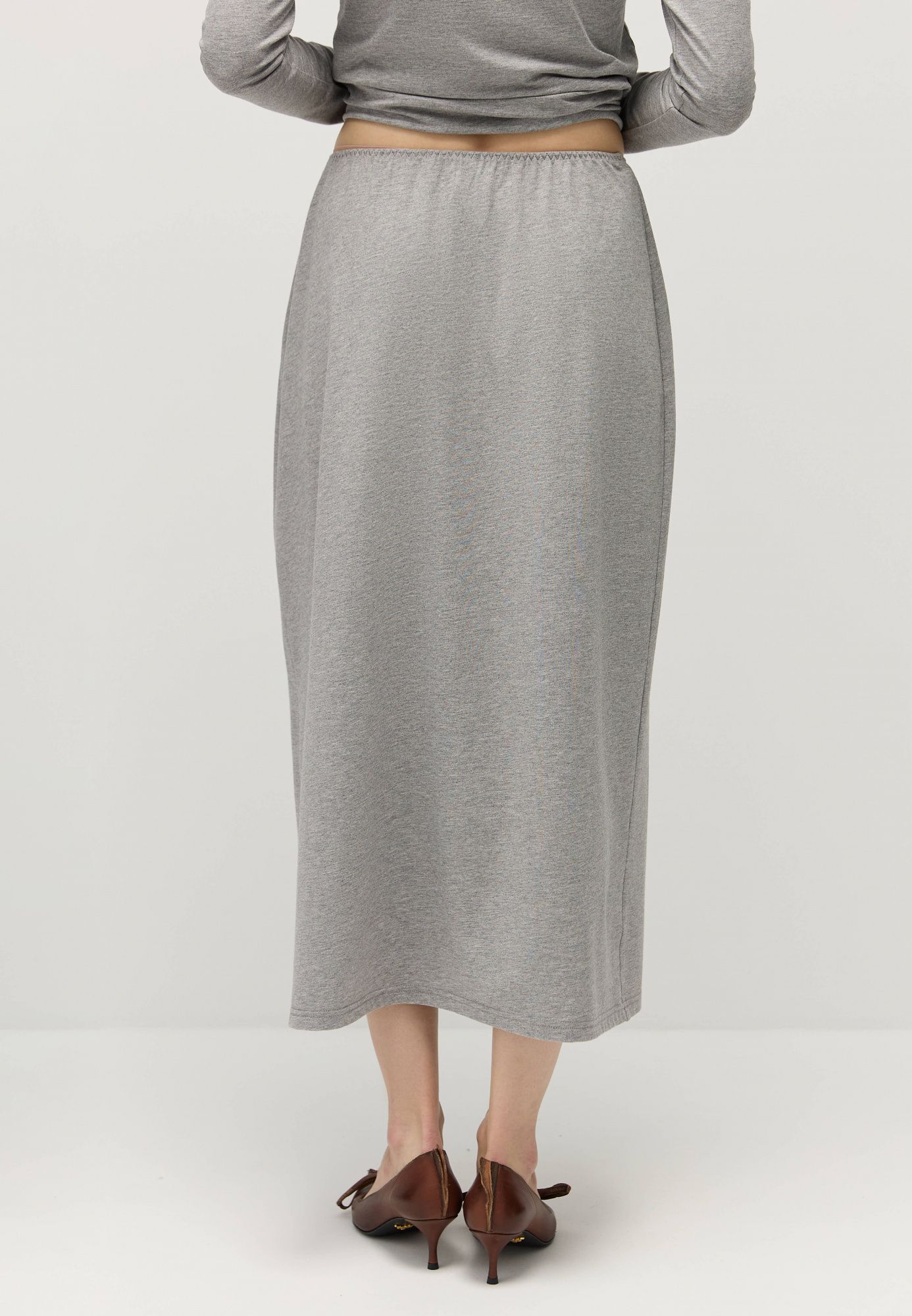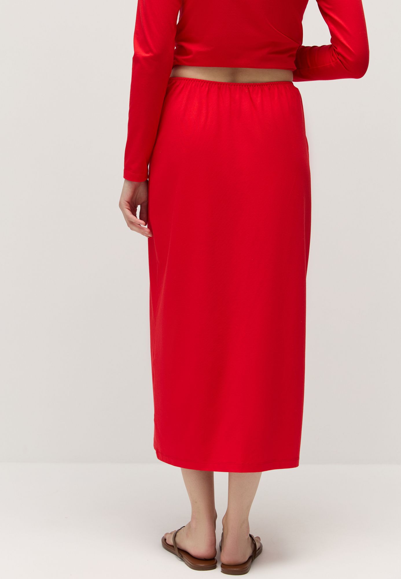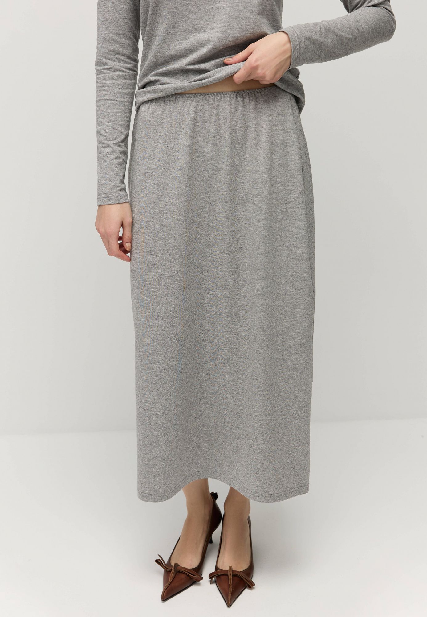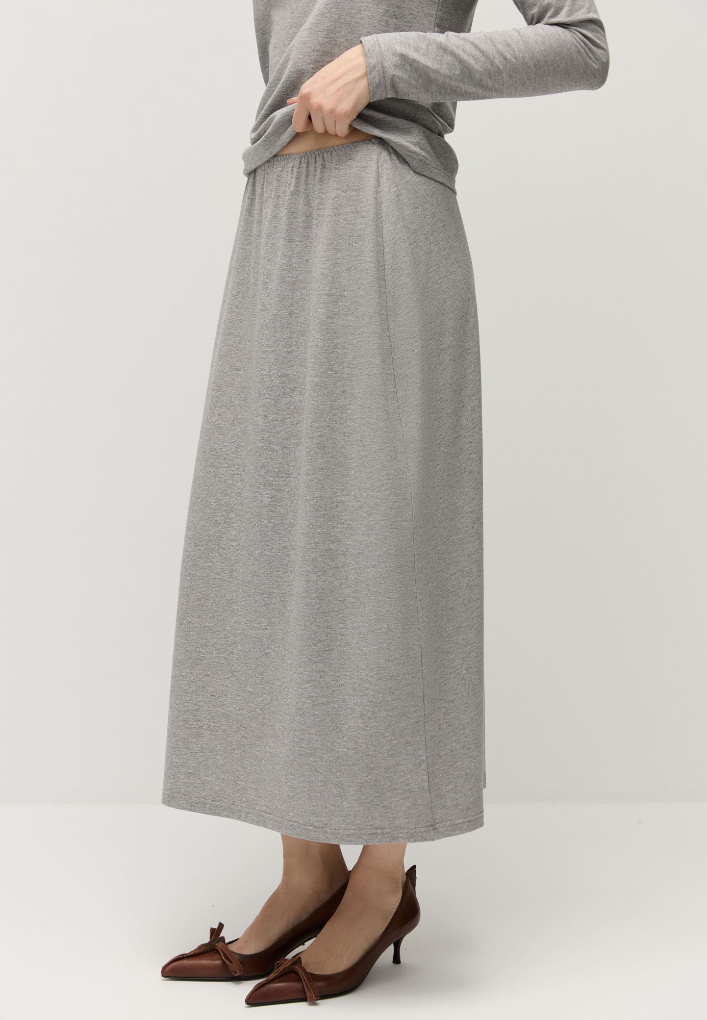 Юбка миди выполнена из хлопка в смеси с модалом — натуральным волокном из древесины бука или эвкалипта.
