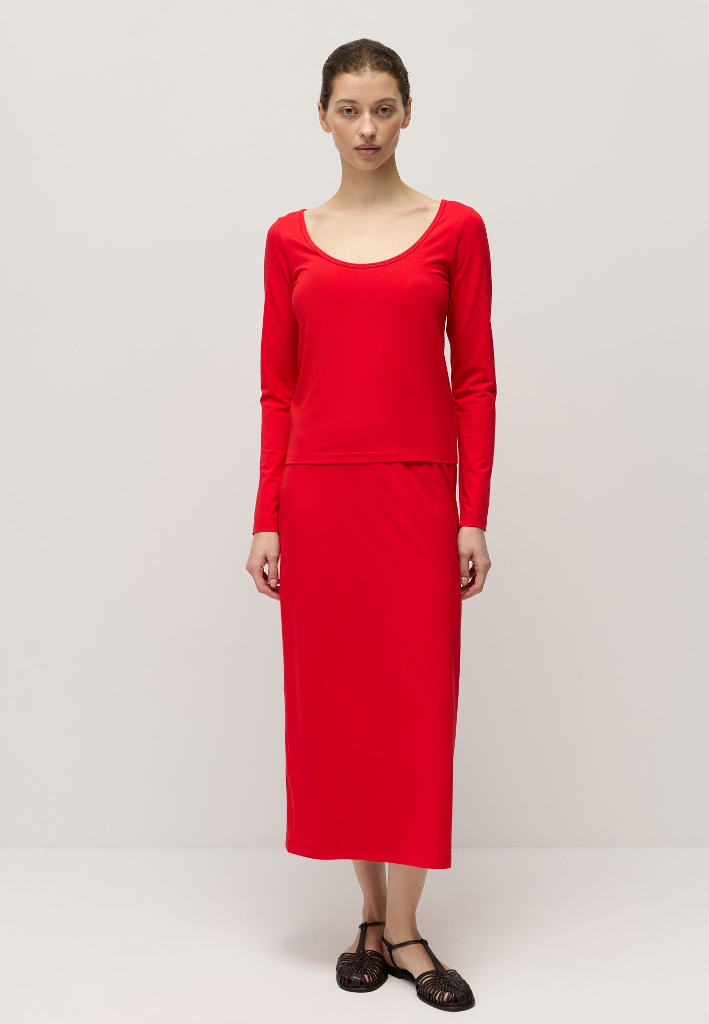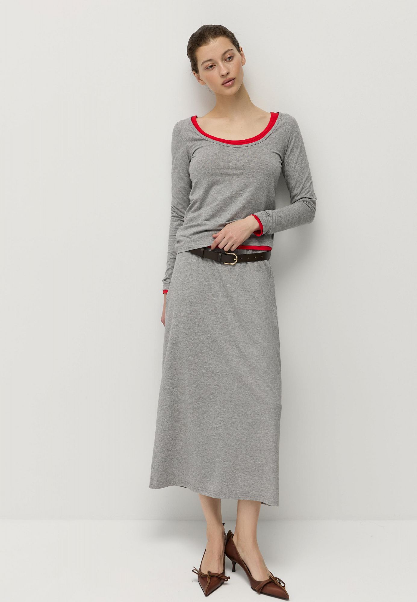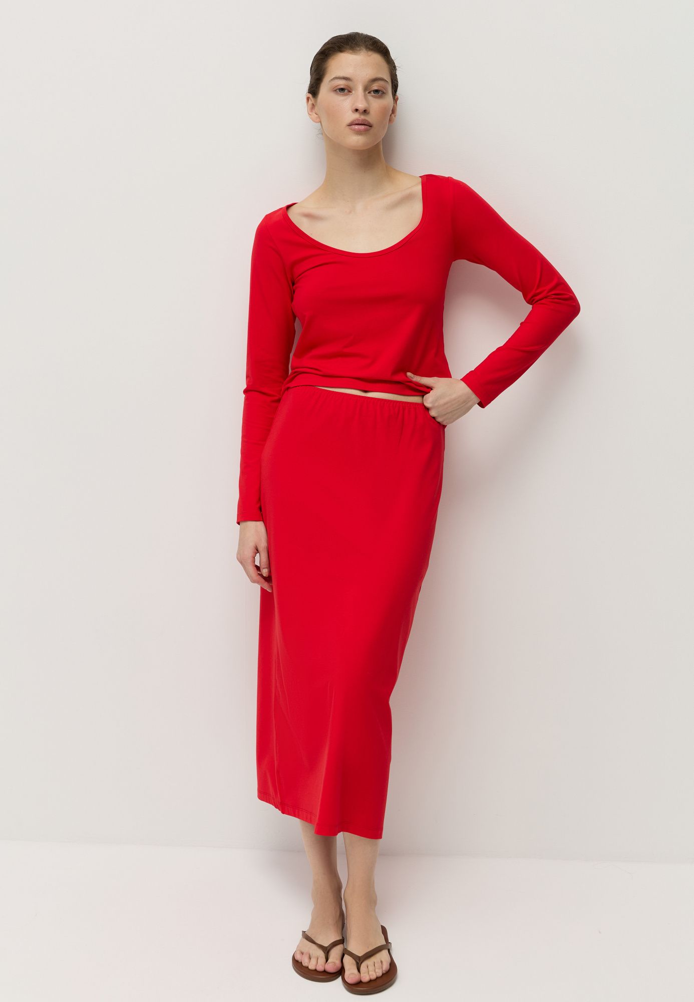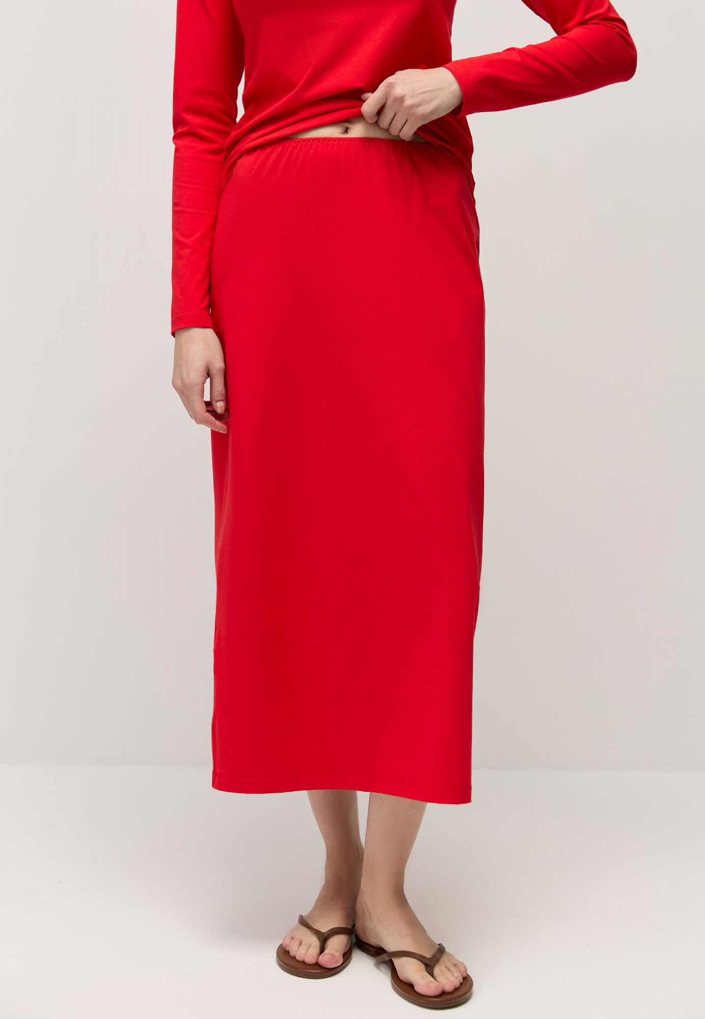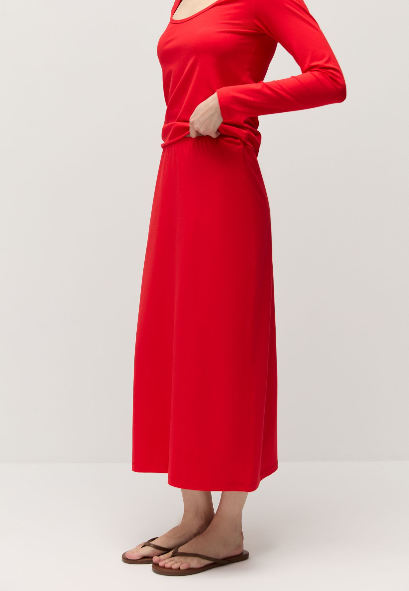 Юбка миди выполнена из хлопка в смеси с модалом — натуральным волокном из древесины бука или эвкалипта.
