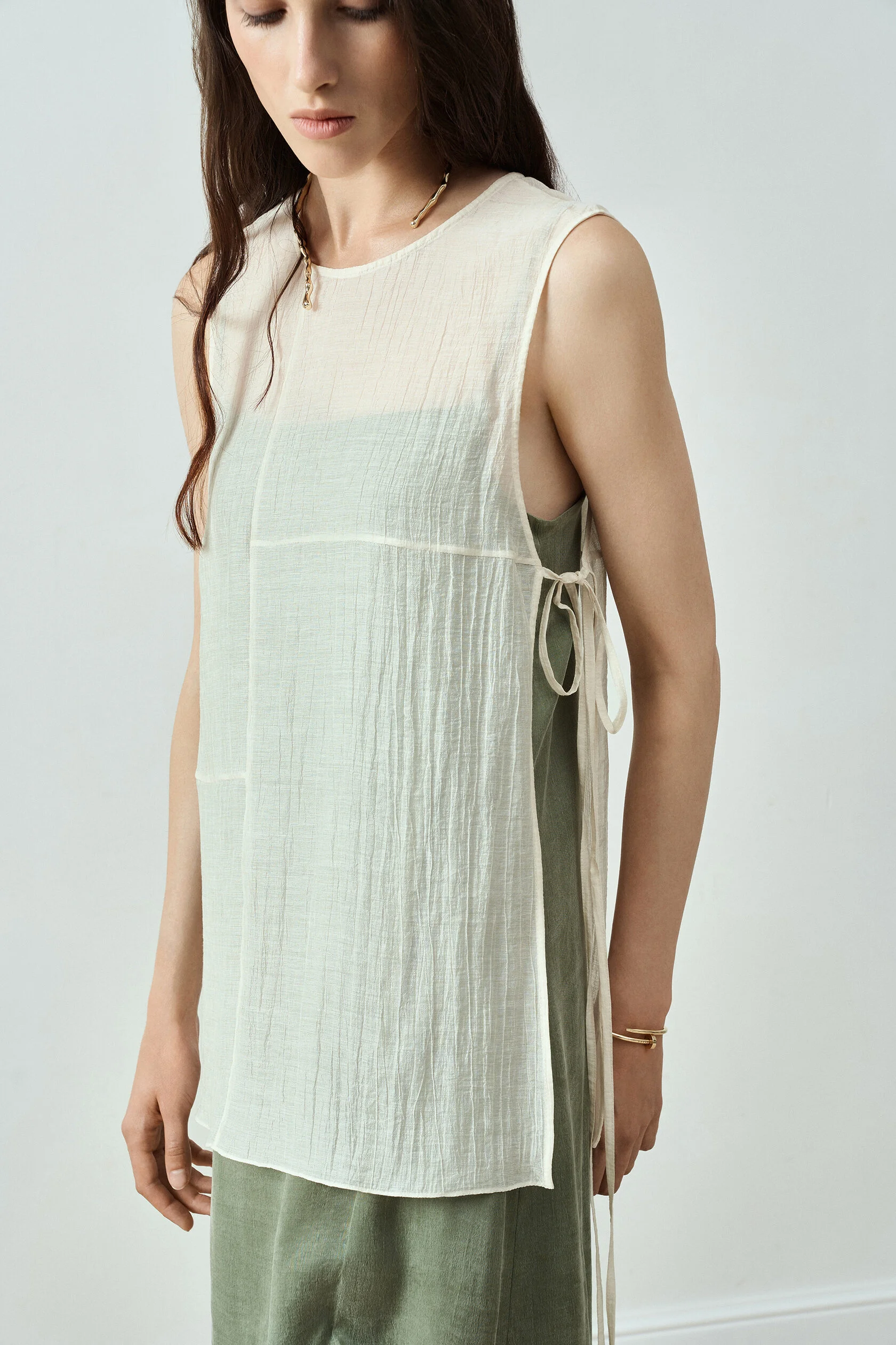 Юбка-баска из тонкого жатого тенселя на завязках
