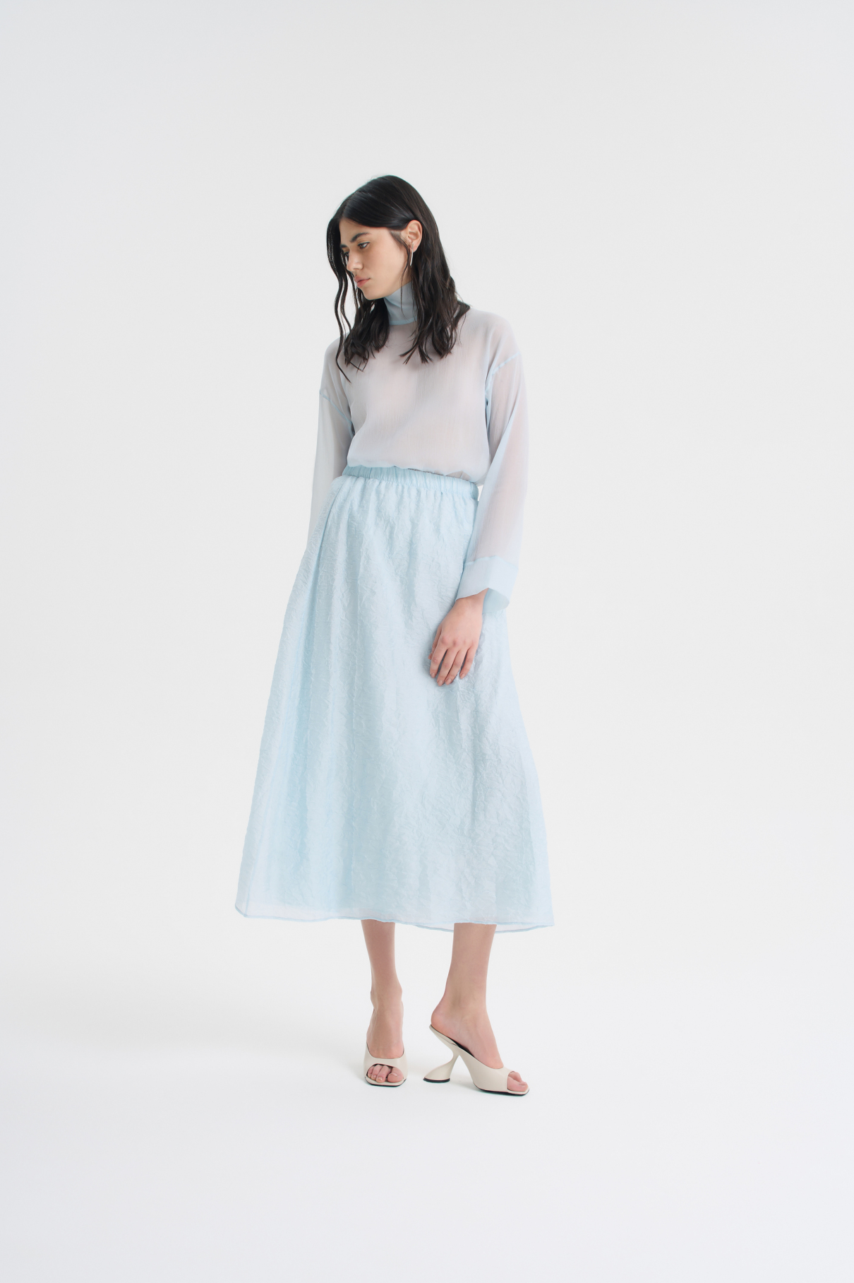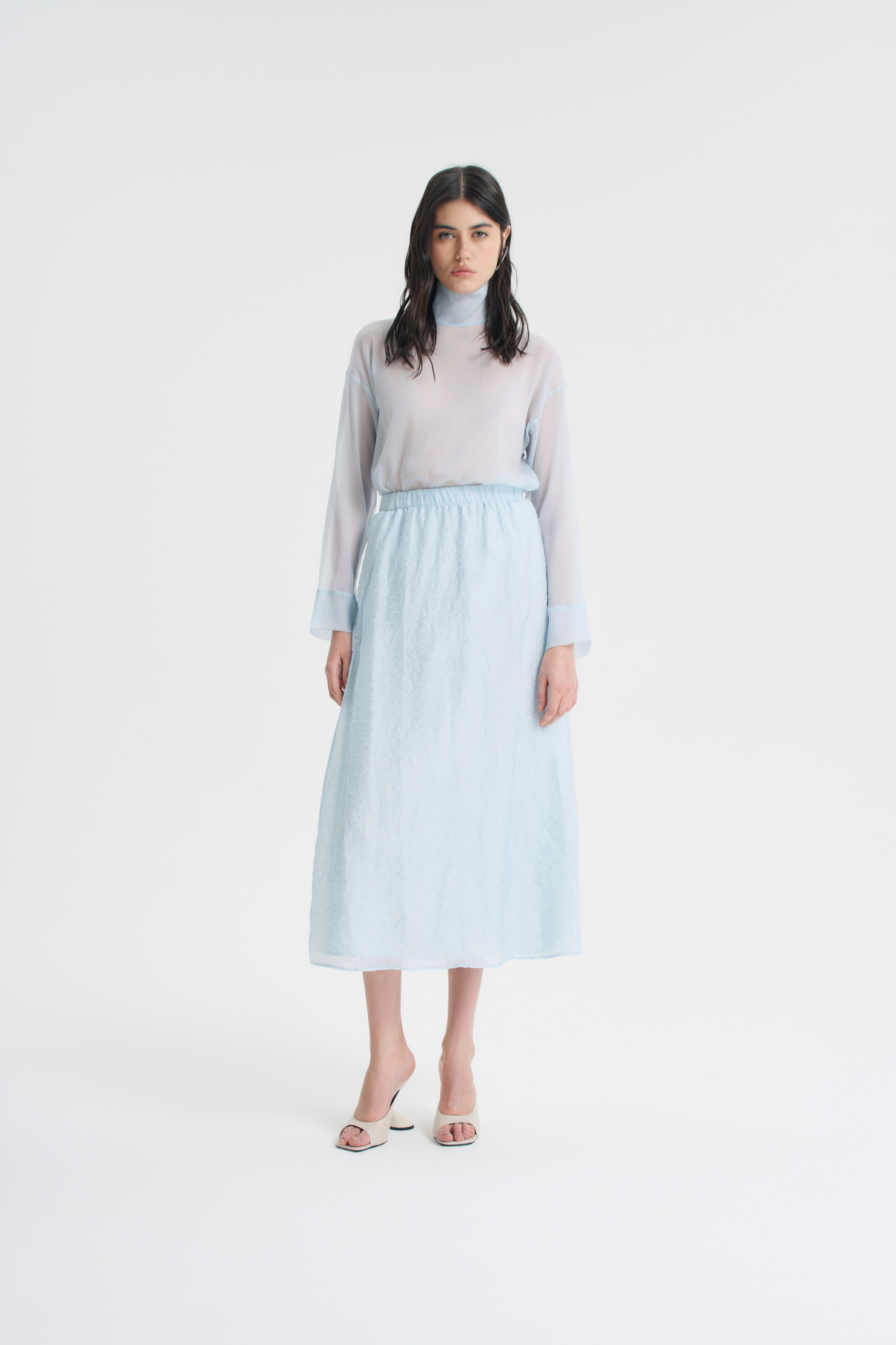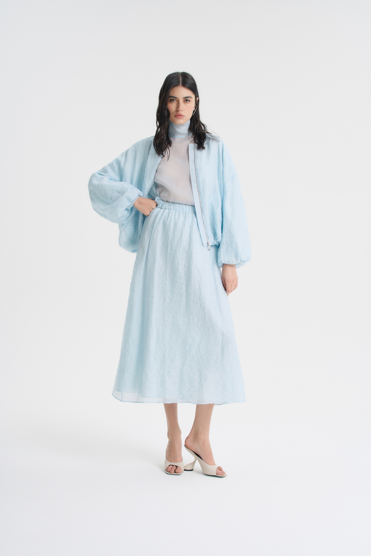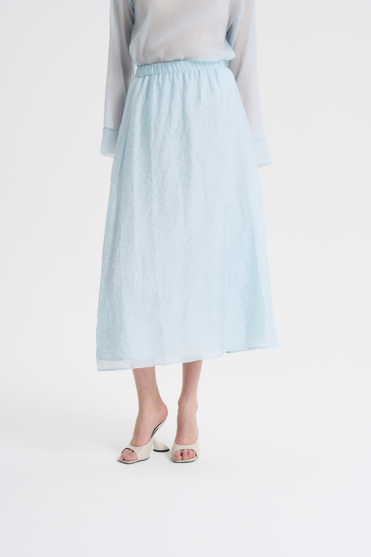 Легкая и воздушная юбка из жатой вискозы добавит романтичности и богемного шика любому образу. Благодаря поясу на мягкой резинке юбка очень комфортно ощущается на талии. Лаконичный А-силуэт и длина макси позволяют легко сочетать ее с изделиями в разных стилях. В комбинации с бомбером из жатой вискозы юбка образует красивый комплект. Изделие представлено в нежном-голубом и черном цветах.