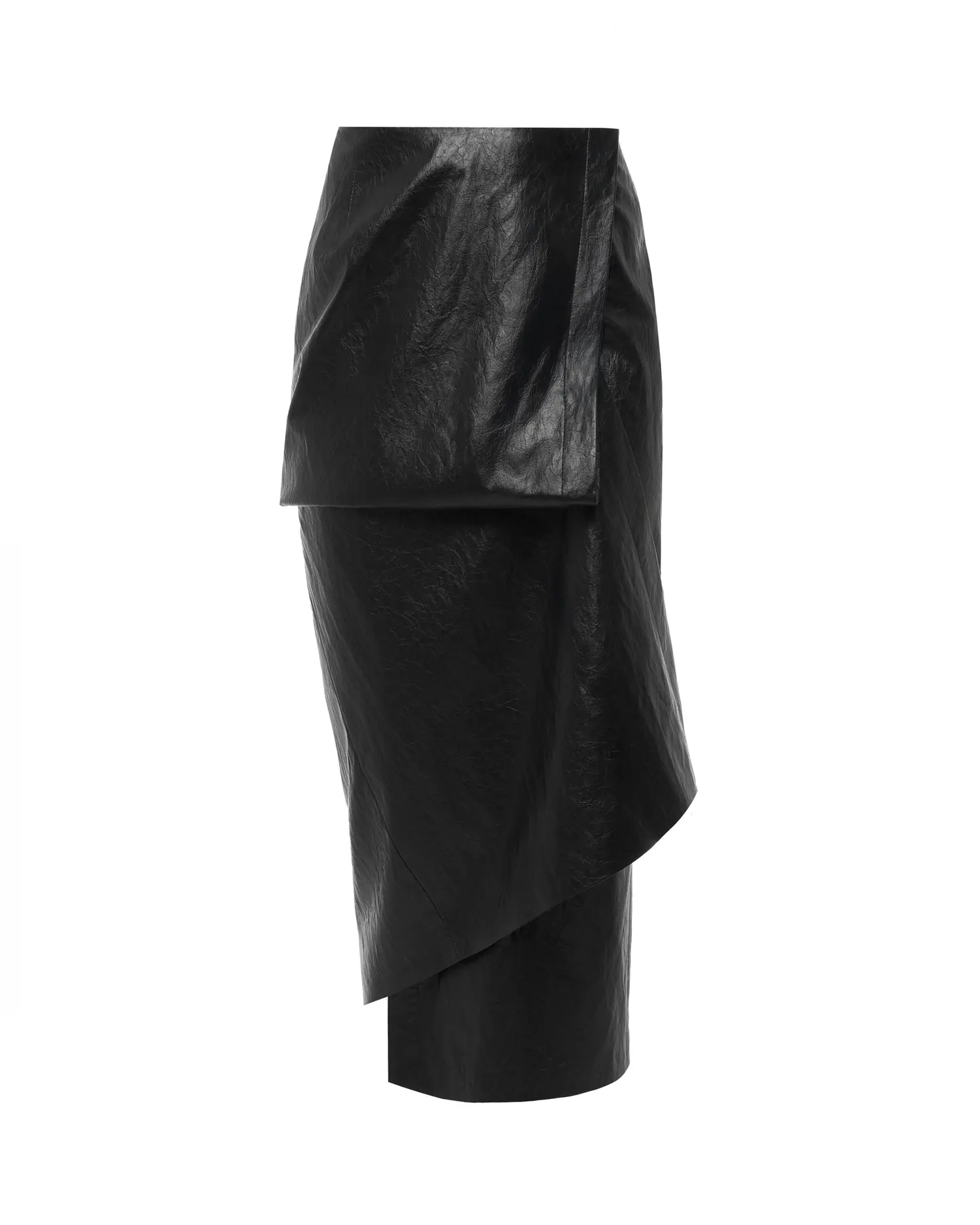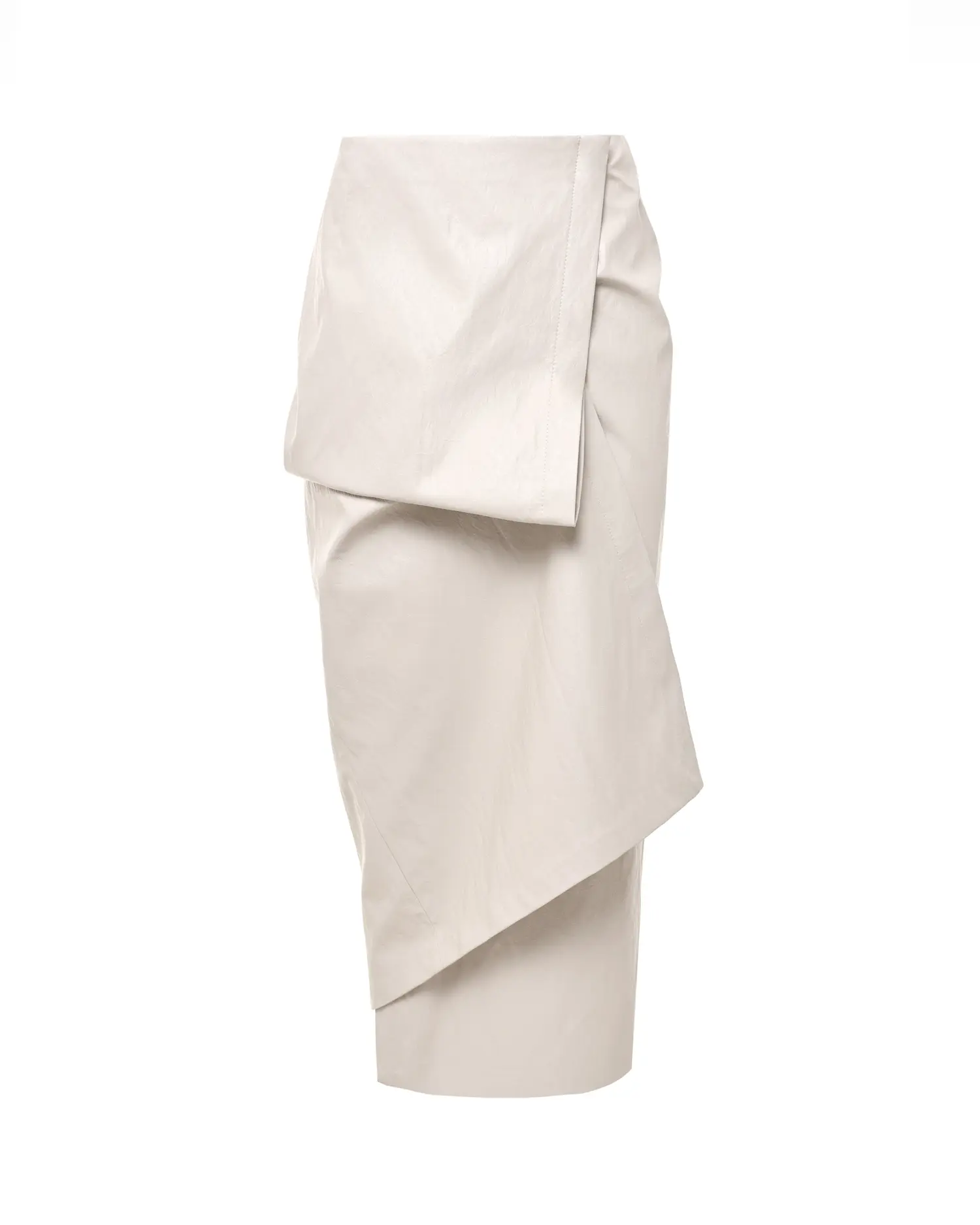 Юбка на запах из фактурной эко-кожи с подкладкой. Объем по талии регулируется с помощью скрытых кнопок, а секретная пуговица на внутренней планке позволяет задрапировать юбку, добавляя игру слоев. Идеальна в тандеме с бадлоном из кашемира и платьем-топом KAMI.