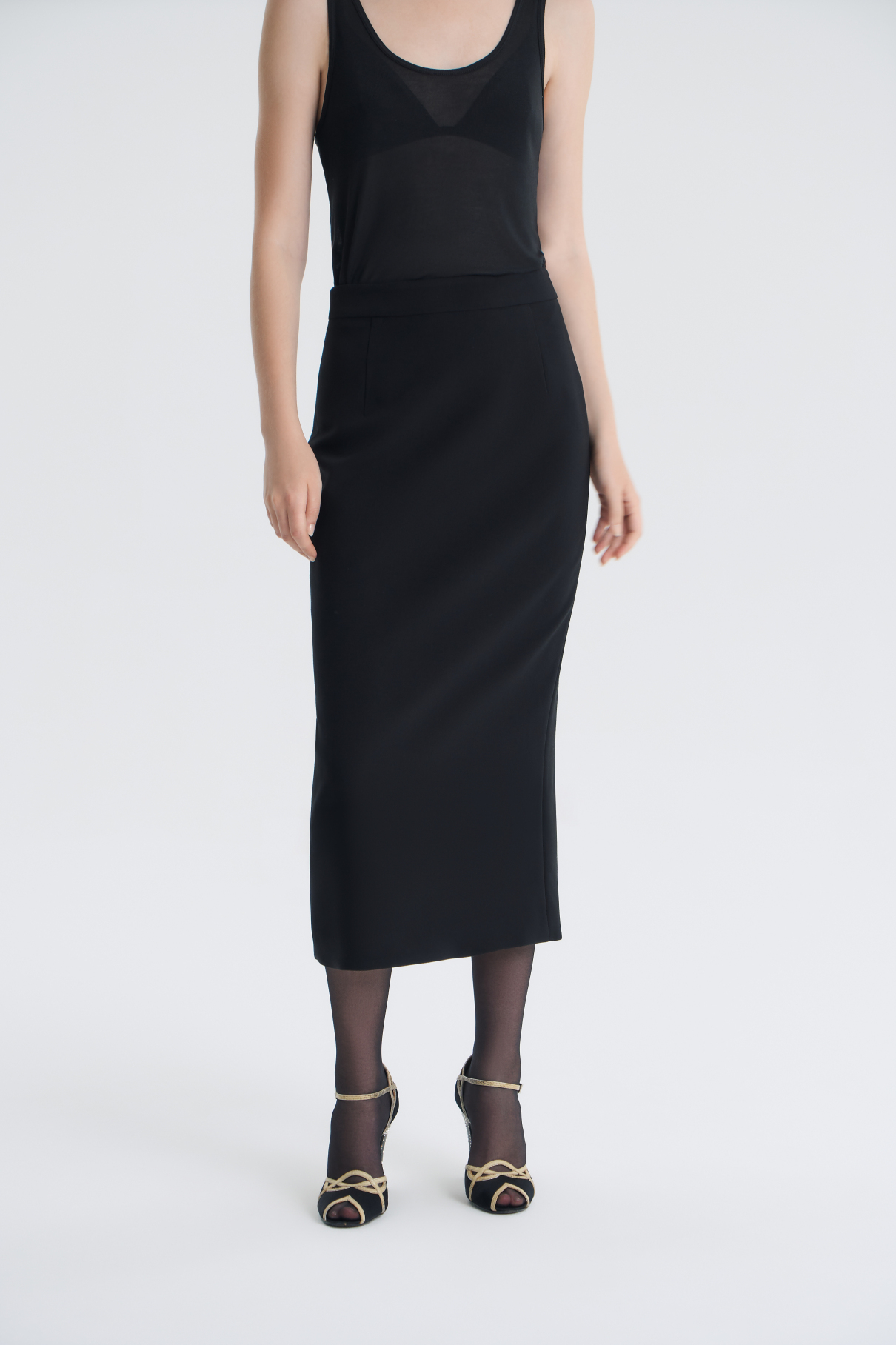 Все детали юбки миди "Ma chérie" продуманы с целью эффектно подчеркнуть фигуру: прилегающий силуэт с заужением к низу, высокая посадка на талии и плотный материал. Для удобства надевания предусмотрена потайная молния, а для свободного шага — разрез в среднем шве сзади.