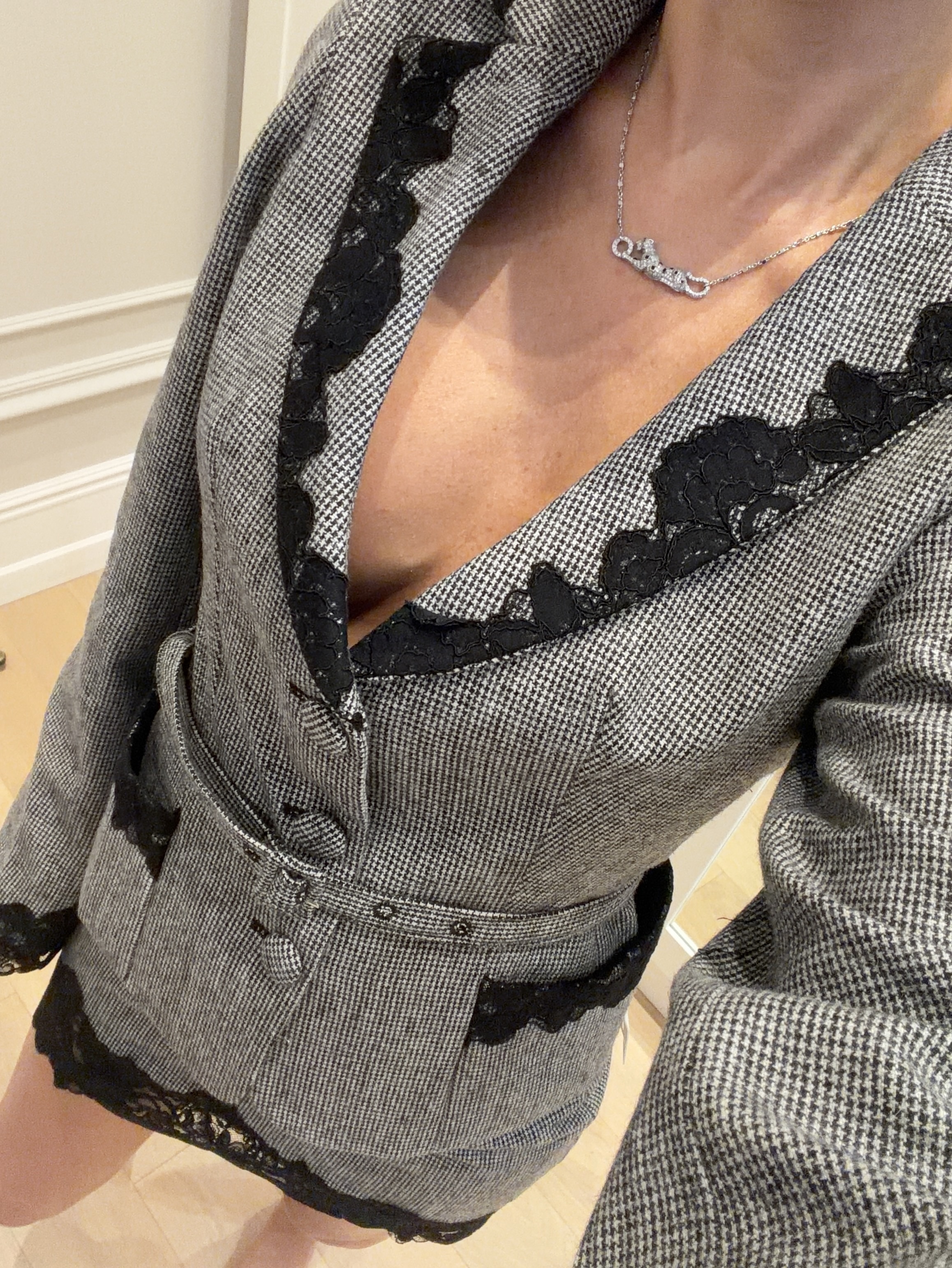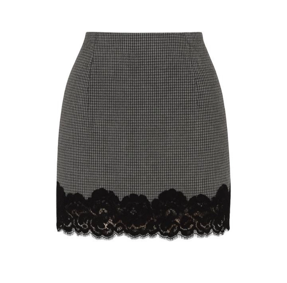 Мини юбка выполнена из 100% шерсти и кордового кружева на подкладке, средняя посадка
