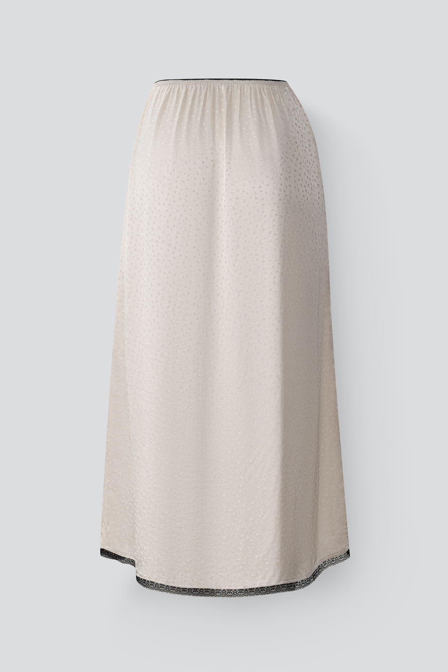 Атласная юбка с кружевом — тот самый акцент, который делает образ запоминающимся. Гладкая, текучая фактура мягко отражает свет и красиво движется при каждом шаге, а изящное кружево по низу добавляет образу нотку чувственности и утончённой дерзости.