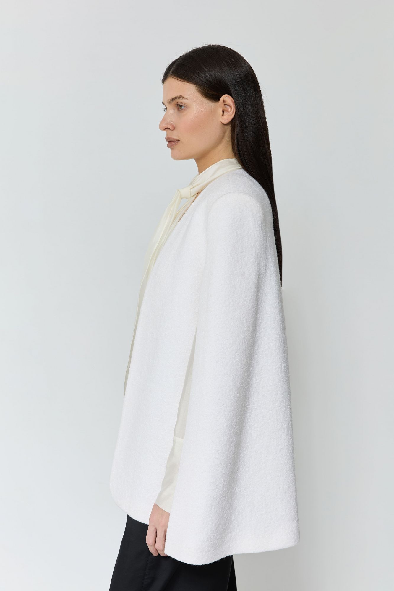 Конструкция кейпа не сковывает движения, подчеркивает линию плеч и делает образ элегантнее.
