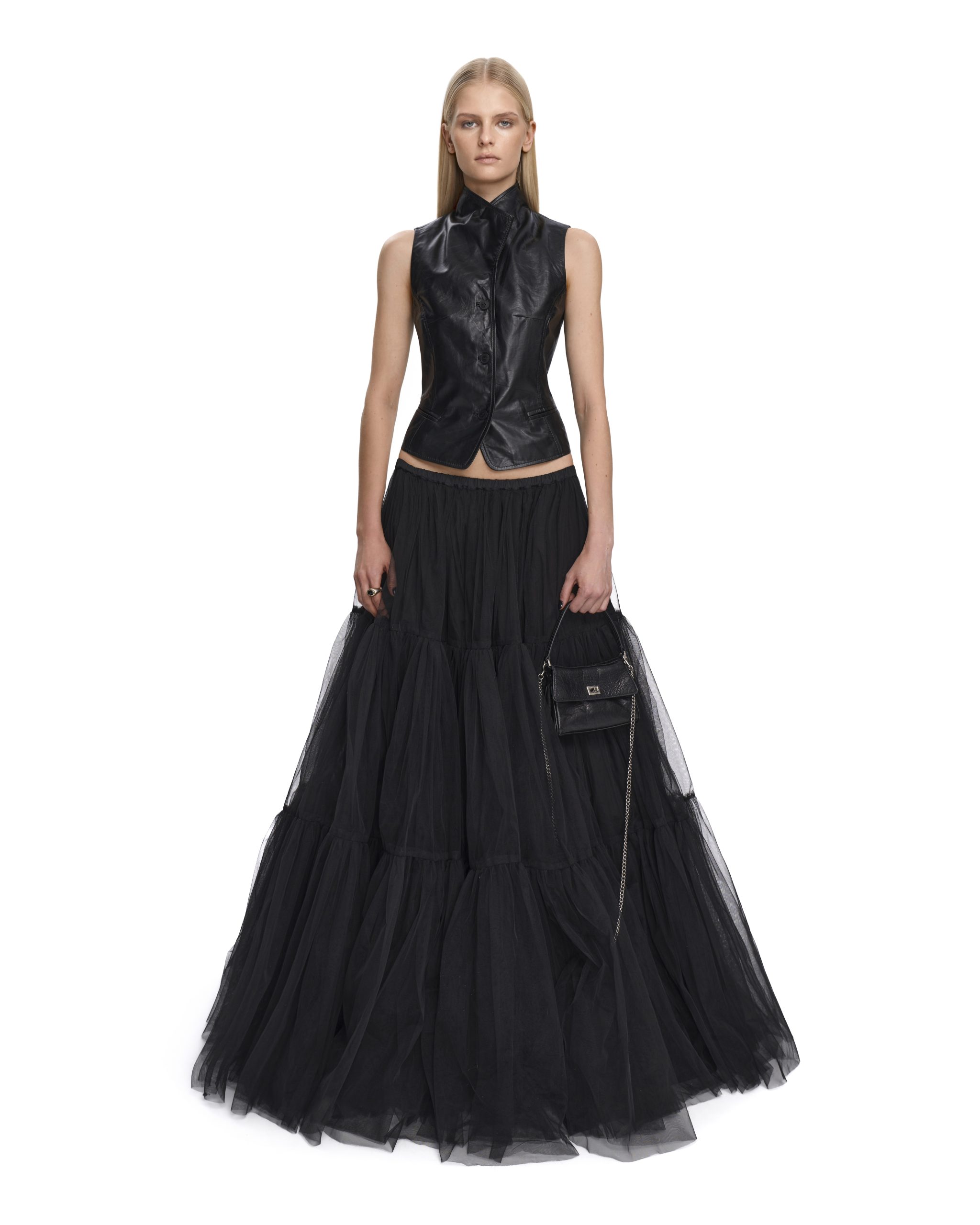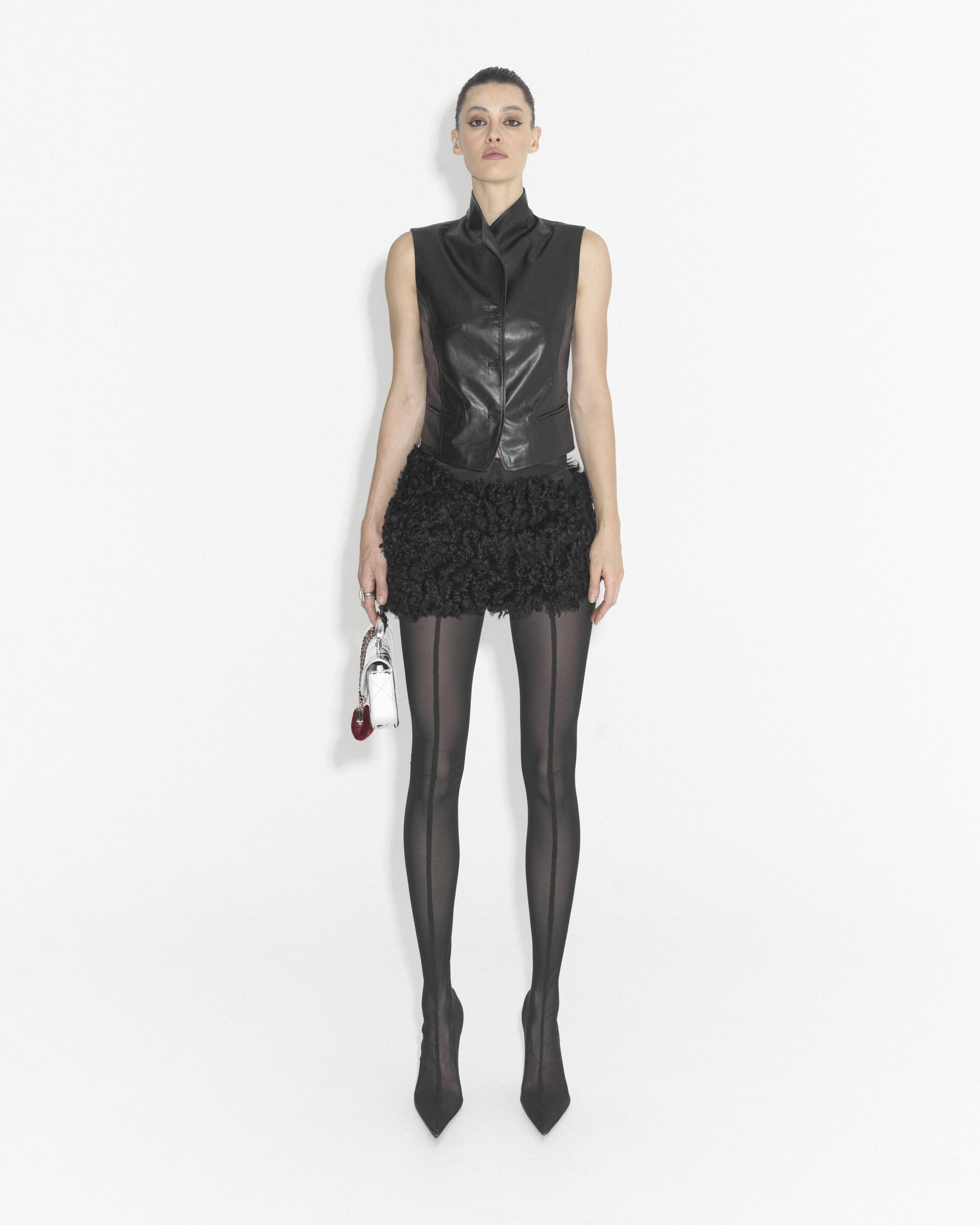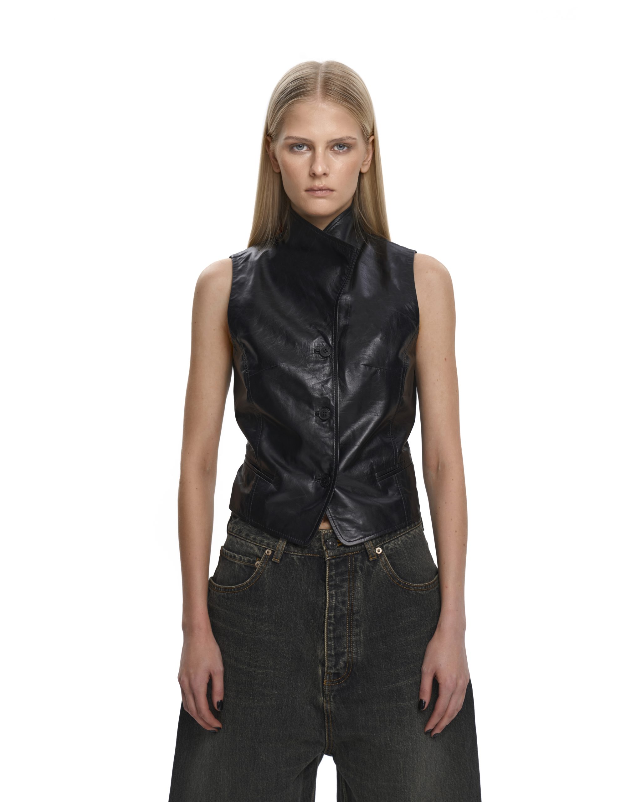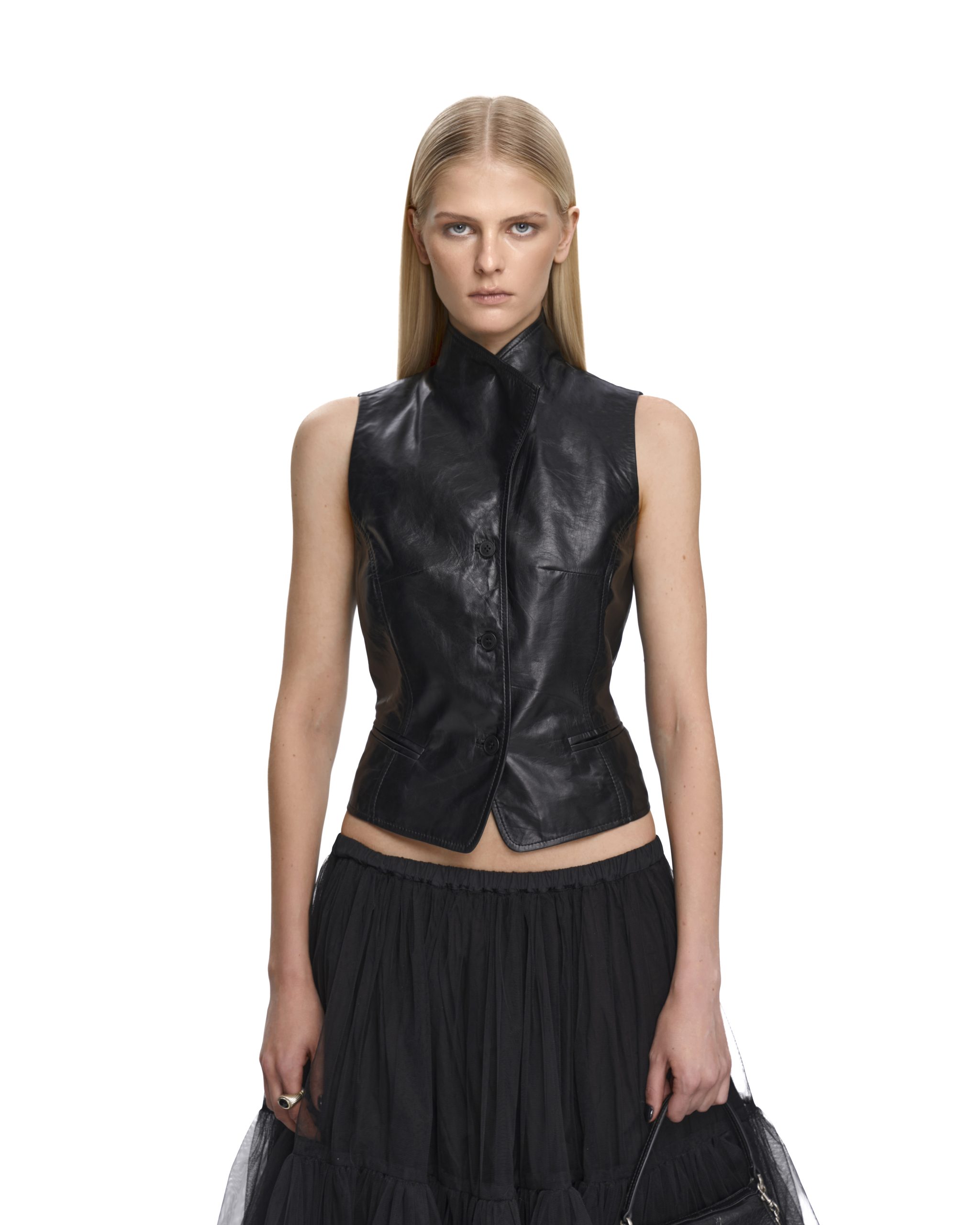 Лаконичный жилет выполнили из мягкой высококачественной кожи ягненка. Приталенный силуэт, чистые линии и аккуратная застежка на брендированных пуговицах, формируют современную архитектурную форму. Модель подчеркивает талию и гармонично сочетается, как с объемными, так и с минималистичными низами, оставаясь ключевым акцентом образа. Создайте яркий, запоминающийся ансамбль в комплекте с ЮБКОЙ SABOTAGE или свободными джинсами.